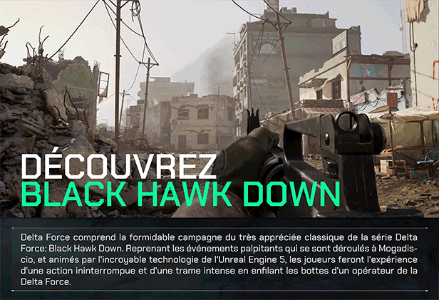 - Black Hawk Down : rejouez les opérateurs de la Delta Force dans ce remake de la campagne culte de la série, inspirée du film de 2001.