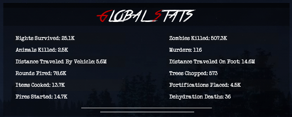 Les classements basés sur le serveur vous permettent de voir qui a survécu le plus longtemps sur le serveur. Chaque joueur aura également des statistiques personnelles vues via le menu principal. Le jeu suit également les statistiques mondiales, vues sur notre site Web/forum et serveur Discord.