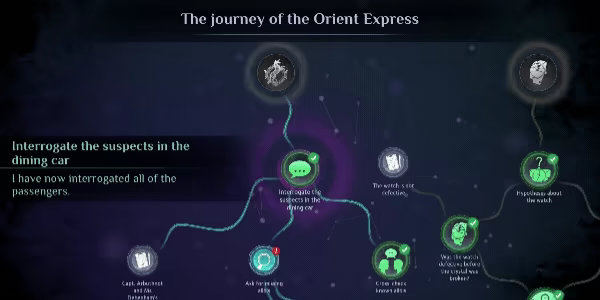 Carte Mentale et Résolution de TimelineEntrez dans la tête de Hercule Poirot pour découvrir des Cartes Mentales et y faire des déductions, qui ajoute une couche supplémentaire de profondeur au gameplay.