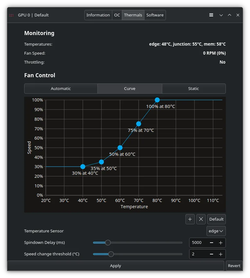 Les constructeurs de cartes graphiques ont tendance à configurer des courbes de ventilation très agressives par défaut. Résultat : vous lancez un jeu, et votre PC se met à souffler comme une turbine. Si vous jouez au casque devant un bureau, c’est tolérable. Mais si votre machine Bazzite trône dans le salon sous la TV, ce bruit de fond casse l’immersion.