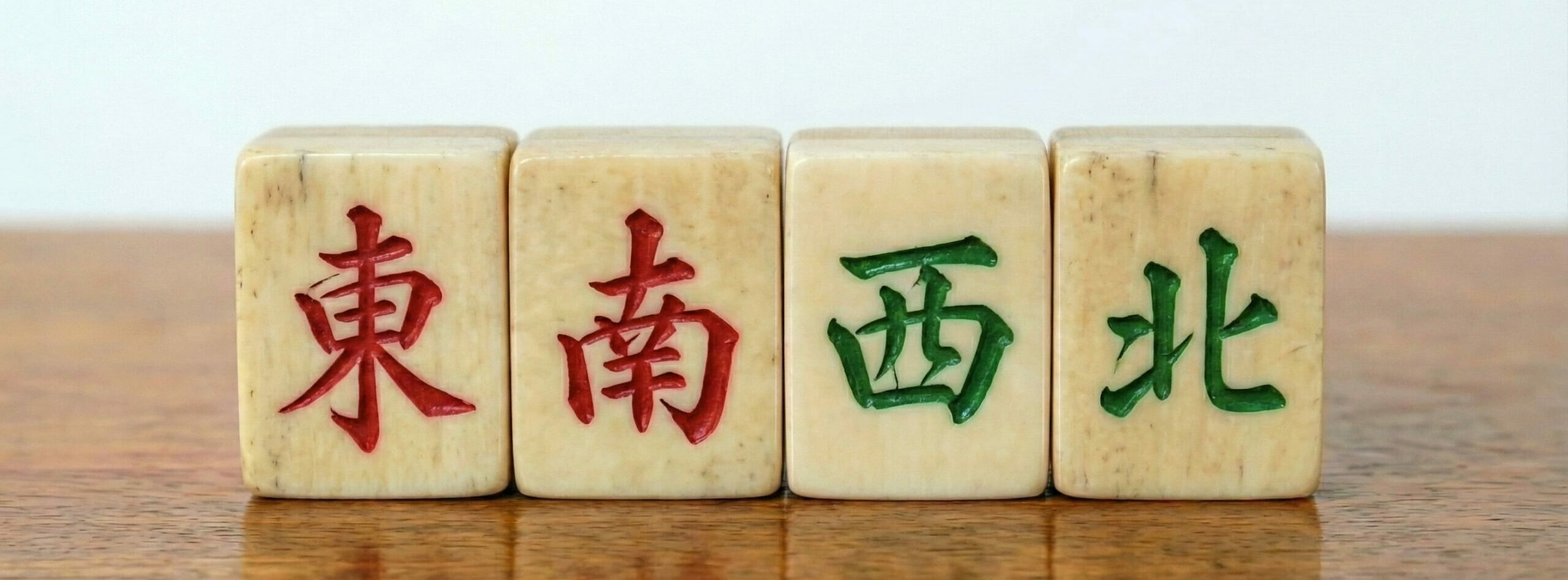 Est, Sud, Ouest, Nord. Classique ? Pas tout à fait. L’ordre est crucial et il ne suit pas notre logique occidentale. Dans le Mahjong, on tourne dans le sens inverse des aiguilles d’une montre : Est -> Sud -> Ouest -> Nord.
